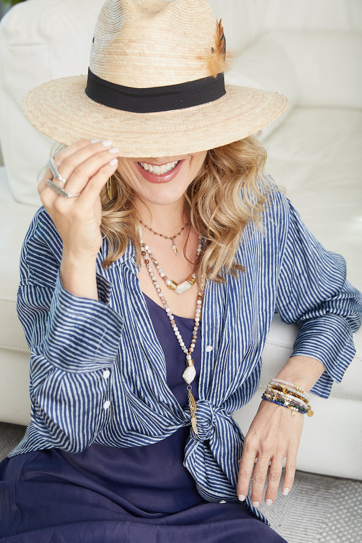 Inspired from over 3000 years of sacred teachings around the globe, Namaste Couture by April Stolf brings, love, compassion, balance, peace, and beauty to all who wear it. Every piece is handmade with love in the USA. Gorgeous gemstones are hand selected from around the world and weaved into many one-of-a-kind designs. Our signature Dharma Mala is handmade with 108 natural gemstones & designed to be worn 6 different ways to compliment every outfit while providing access to chant meditation wherever you are. Infused with Divine light, the connection of the positive energies of the gemstones will remain in your auric field throughout time.
